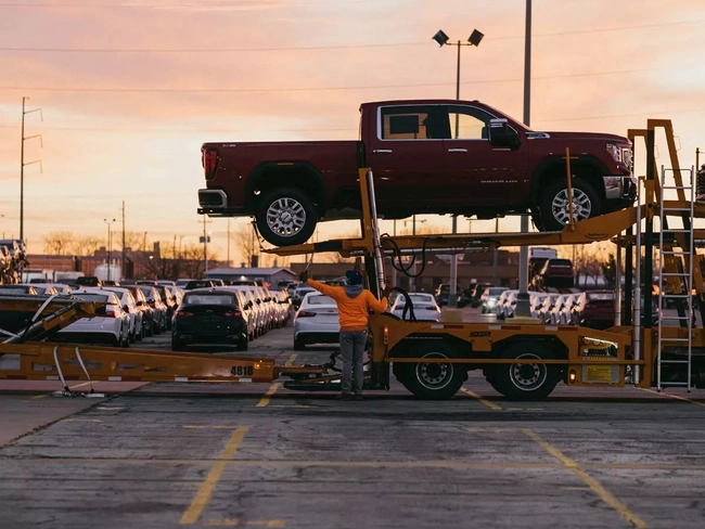 First, he will stop at a dealership in Emporia, Kansas, dropping off three Chevy Trailblazer SUVs built at a factory in South Korea. Then, he will continue to Wichita bearing two Chevy Malibus from the Fairfax plant, and a pair of Cadillacs: a CT5 sedan made in Lansing, Michigan, and an Escalade SUV produced near Fort Worth, Texas. Finally, there is a blue Chevy Silverado pickup truck built in Mexico. “Such a long journey,” said Pinegar.