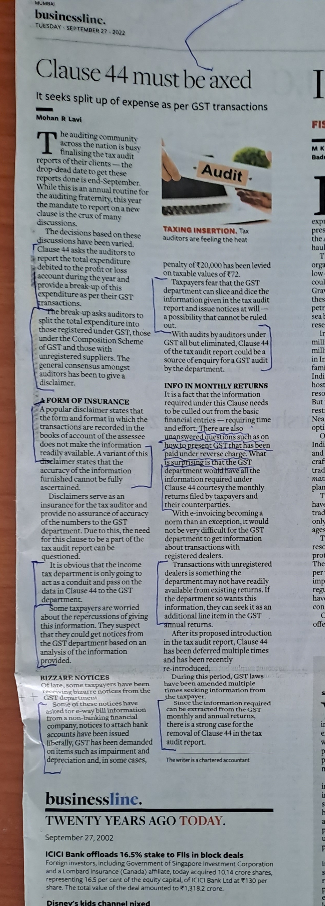 Income Tax Audit Clause 44 — will it help ? Read the article courtesy BusinessLine
