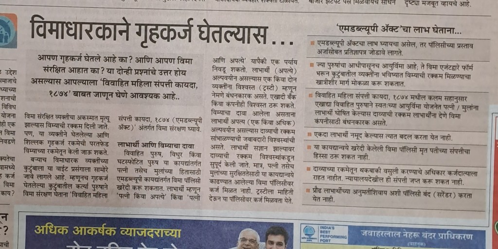 गृह कर्ज व विमा–सौजन्य महाराष्ट्र टाइम्स