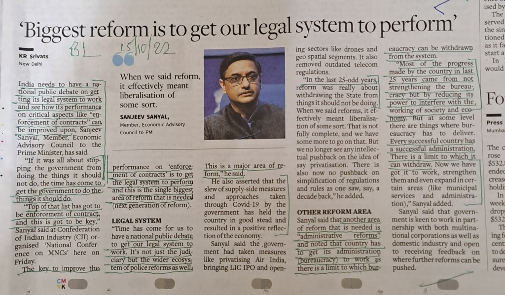 Reforms –Views we cannot ignore–[ Sanjeev Sanyal –Member Economic Advisory Council PMO ] Courtesy BusinessLine
