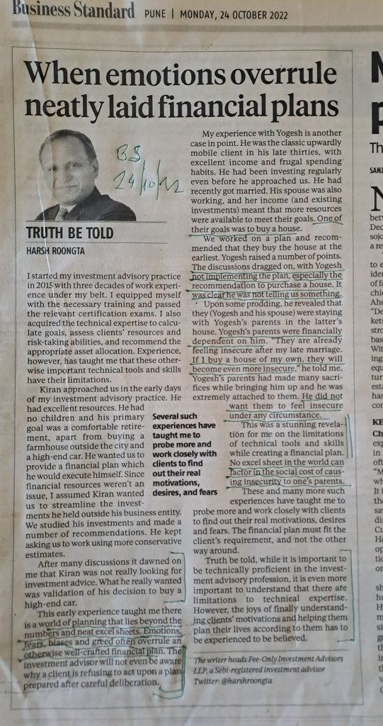 How emotions overruled studied plans–courtesy Business Standard