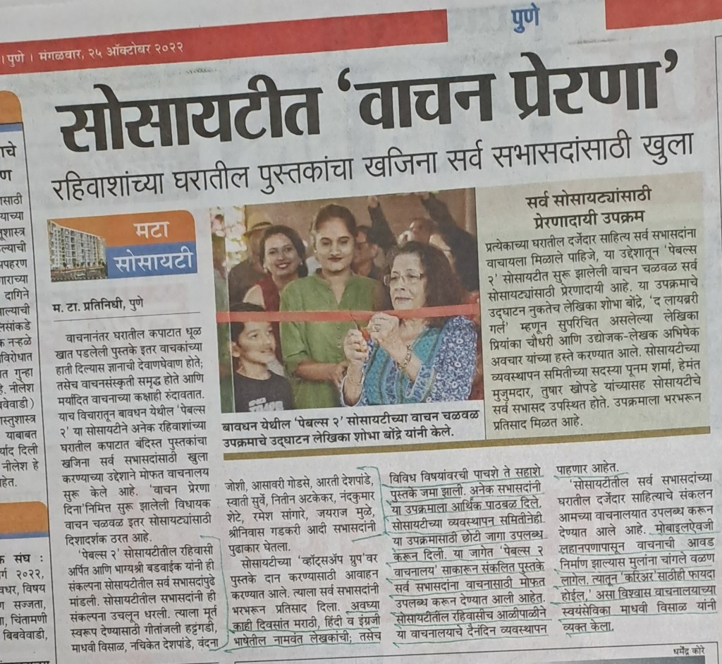 सोसायटी मधील वाचन प्रेरणा–courtesy महाराष्ट्र टाइम्स