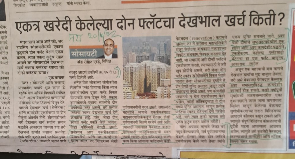 हाऊसिंग सोसायटी बाबत– महाराष्ट्र टाइम्स सौजन्याने
