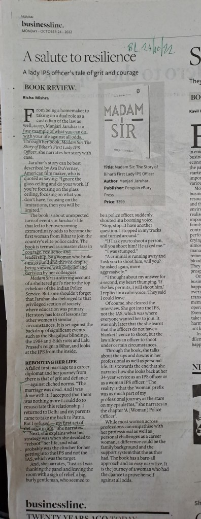 Lady police officer biography–worth reading –courtesy BusinessLine