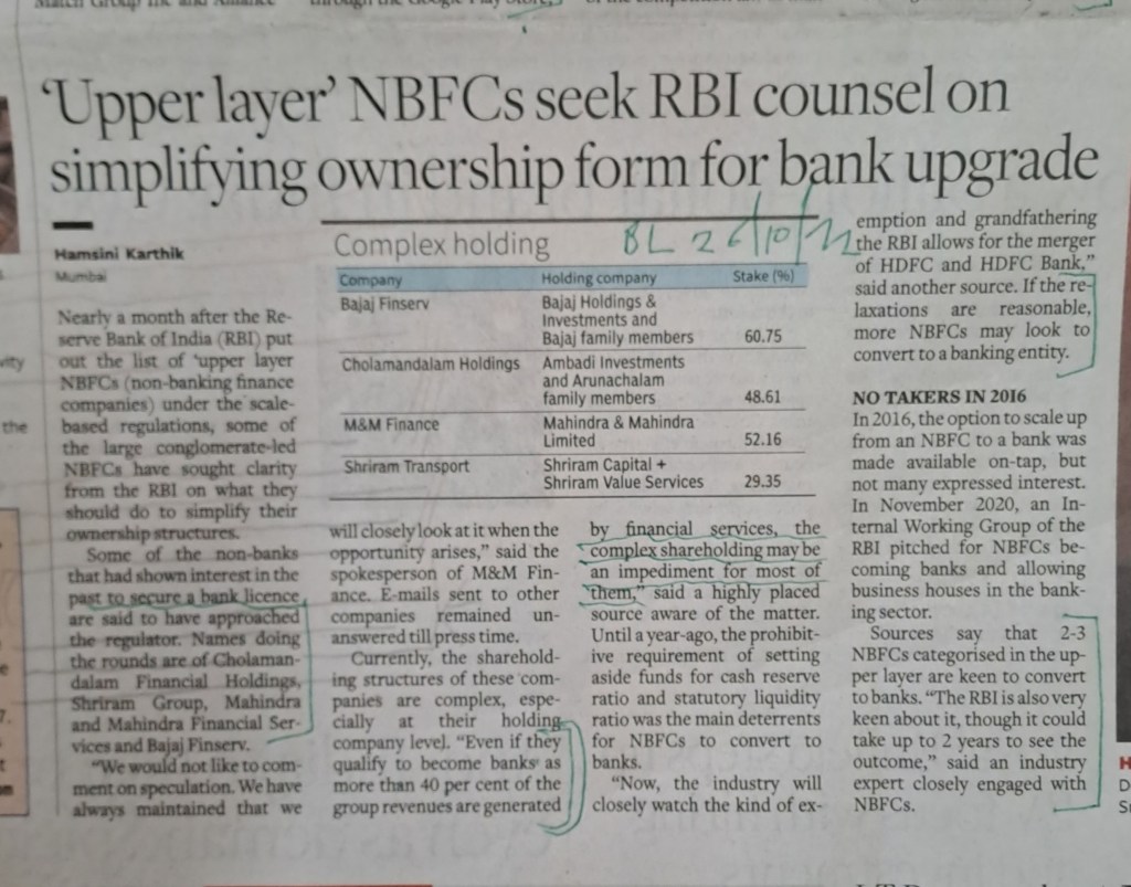 NBFC conversion into Banks –clarification sought–courtesy BusinessLine