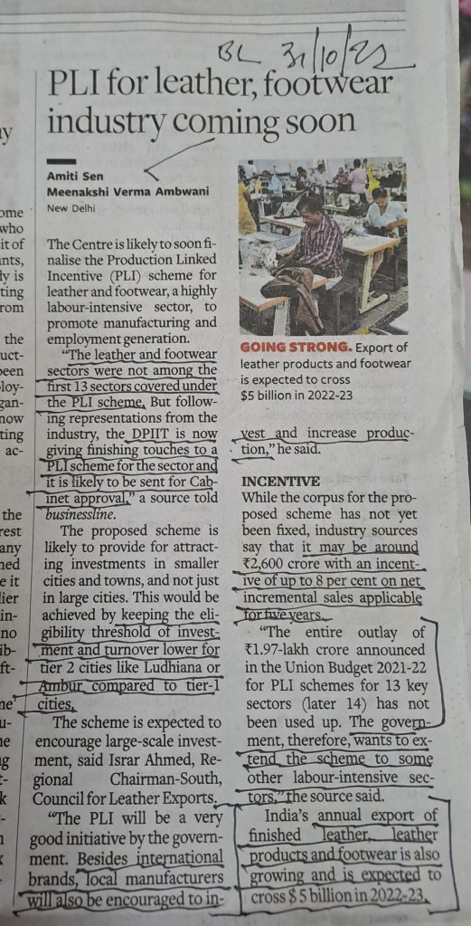 PLI scheme to include leather and footwear industries –courtesy BusinessLine