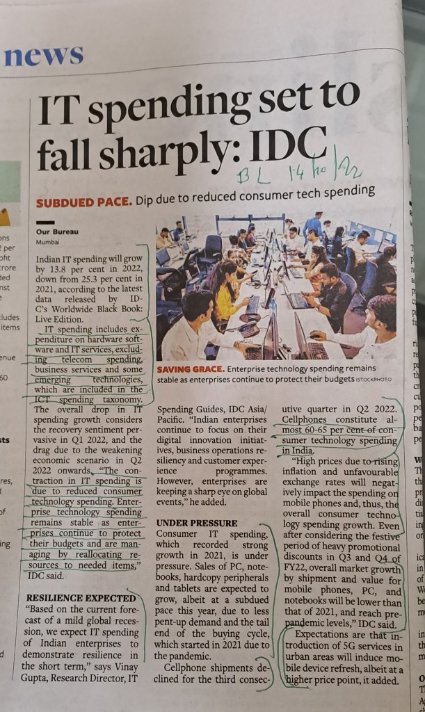 IT spending –set to fall –IDC –courtesy BusinessLine