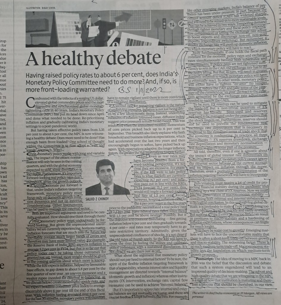 MPC [ RBI ] debate vis a vis inflation–courtesy Business Standard
