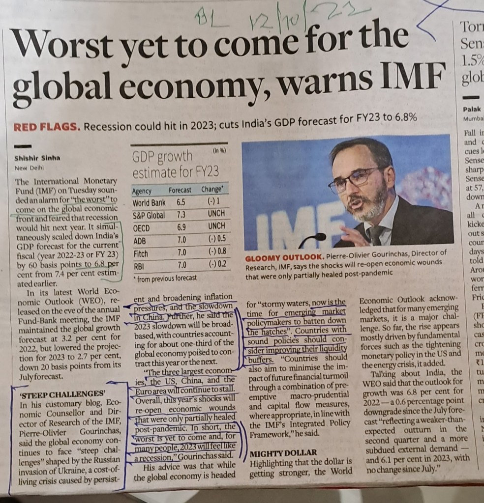 Worst yet to come –warns IMF –Courtesy BusinessLine