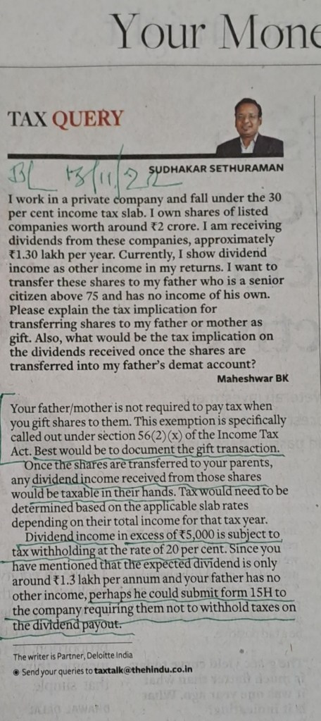 Gift Tax Query — Courtesy BusinessLine
