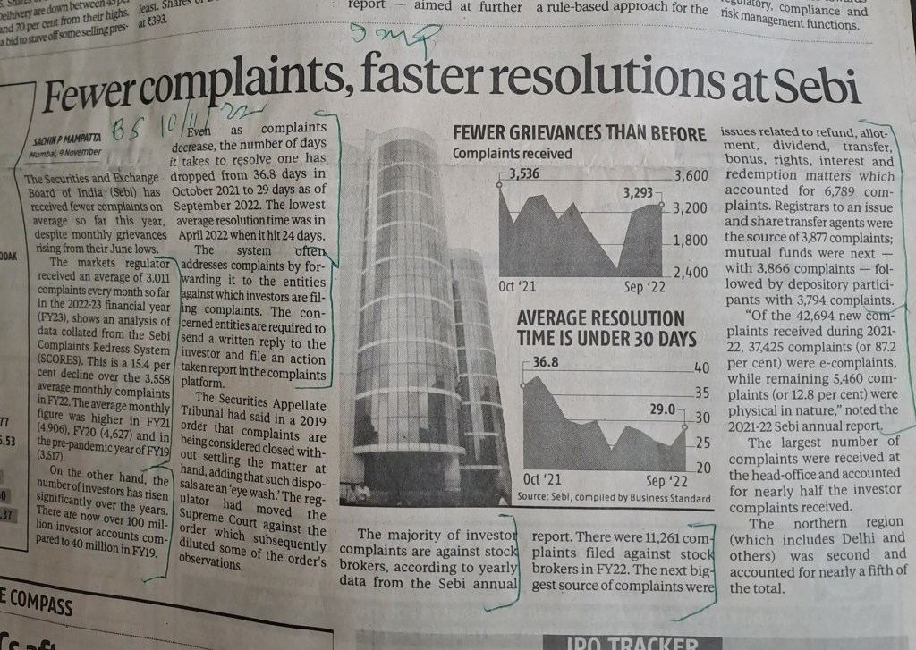 SEBI –Faster resolution and also reduced complaints–Courtesy Business Standard