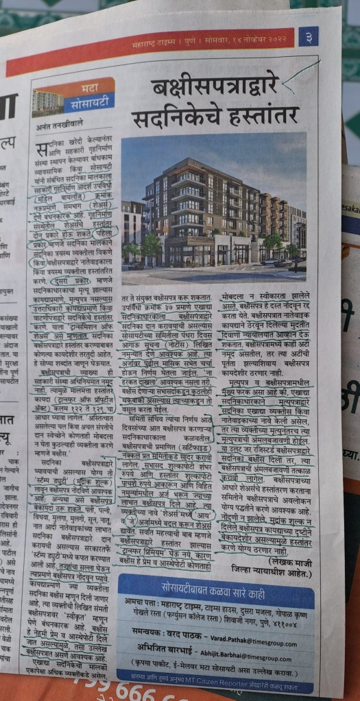 Gift Deed –Property related provisions–Courtesy महाराष्ट्र टाइम्स