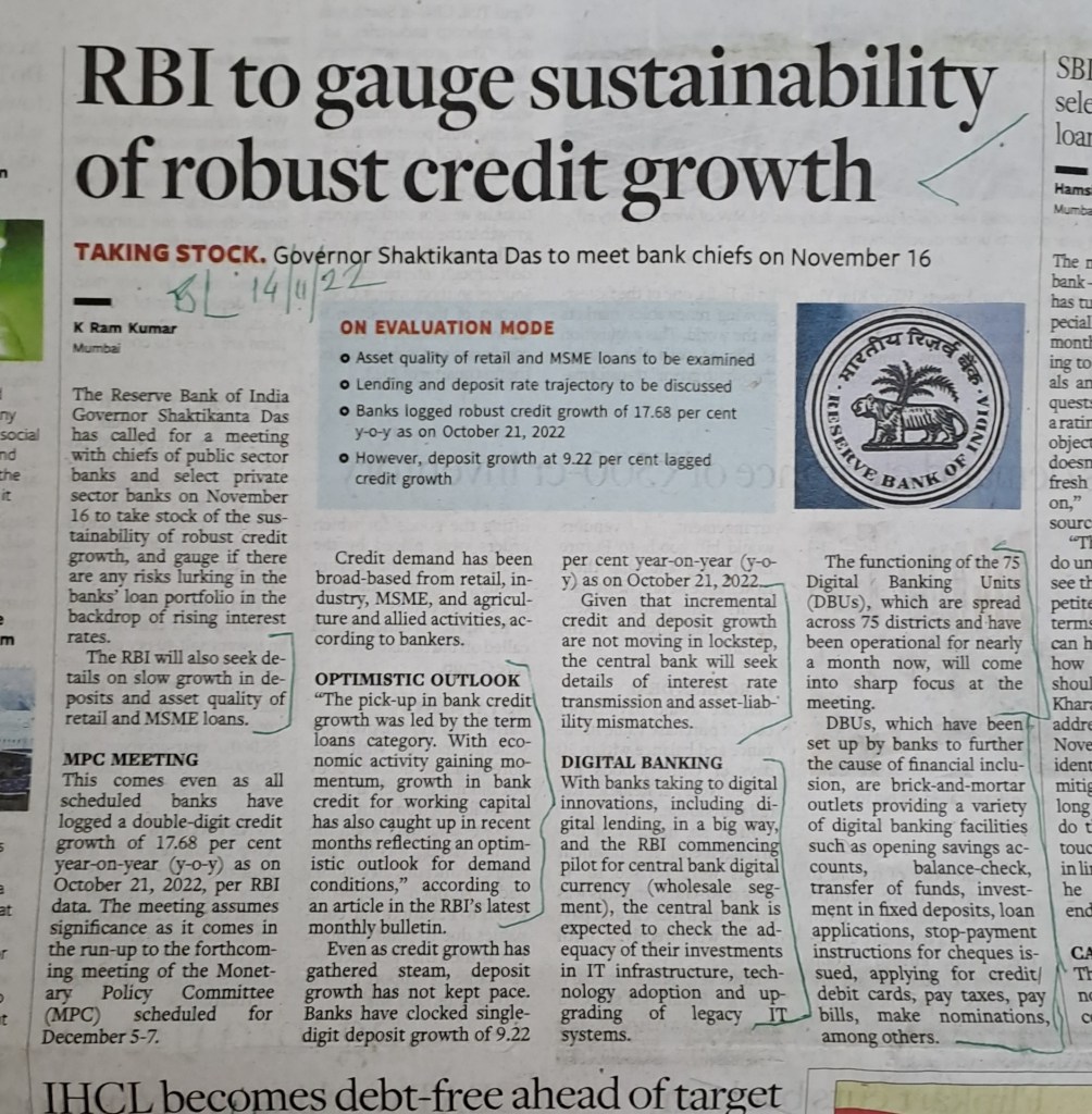 RBI concerned over –deposit growth lagging behind credit growth! –Courtesy BusinessLine