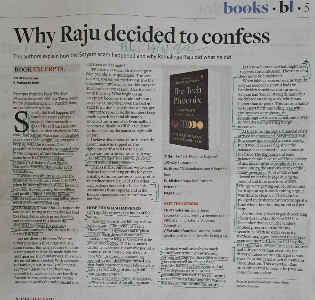 Satyam story–How the system was gamed ? — Worth knowing Courtesy BusinessLine