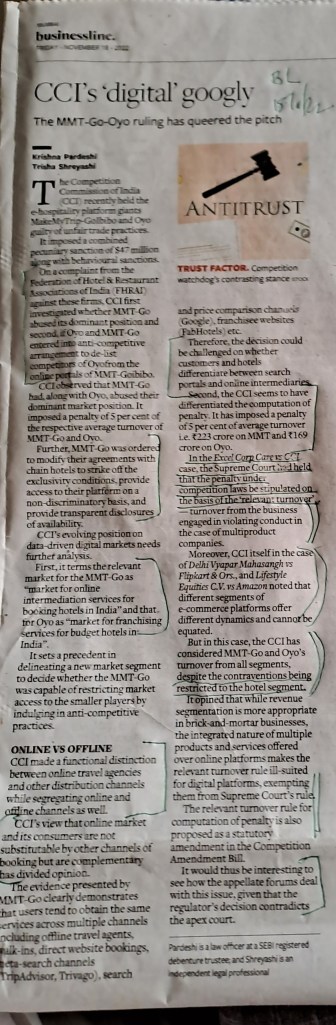 CCI order against OYO and MMT –issues that have arisen–Courtesy BusinessLine