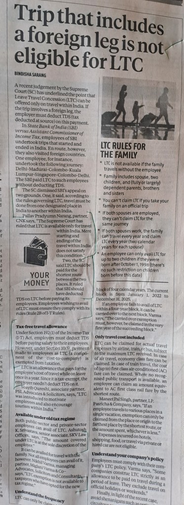 Leave travel concession vis a vis income tax / TDS —courtesy Business Standard