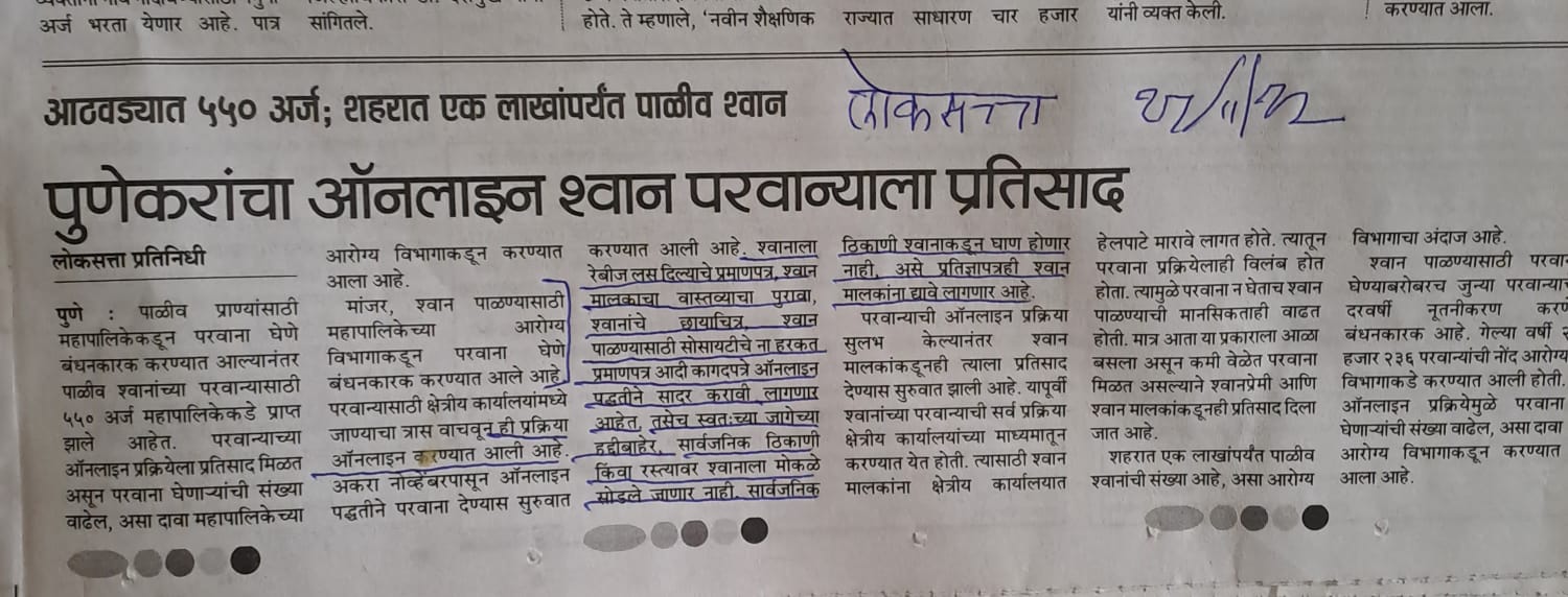 श्वान परवाना पुण्यातील प्रतिसाद–सौजन्य लोकसत्ता
