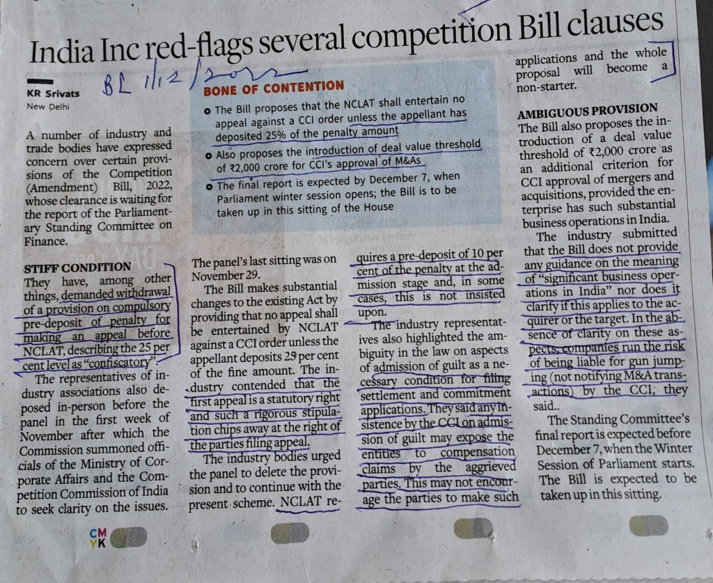 Competition Law ensuing expected changes red flagged — courtesy BusinessLine