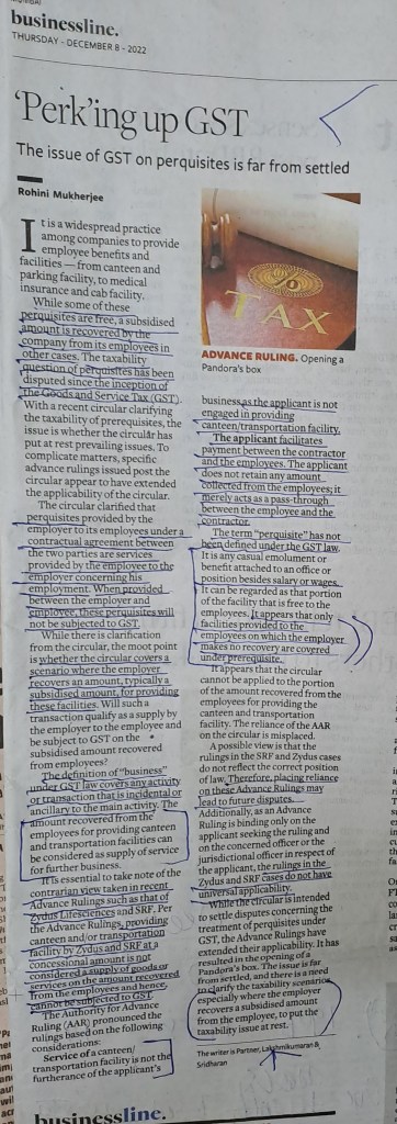 GST on perks and subsidised services reimbursed by employees and whether it attracts GST–? COURTESY BusinessLine