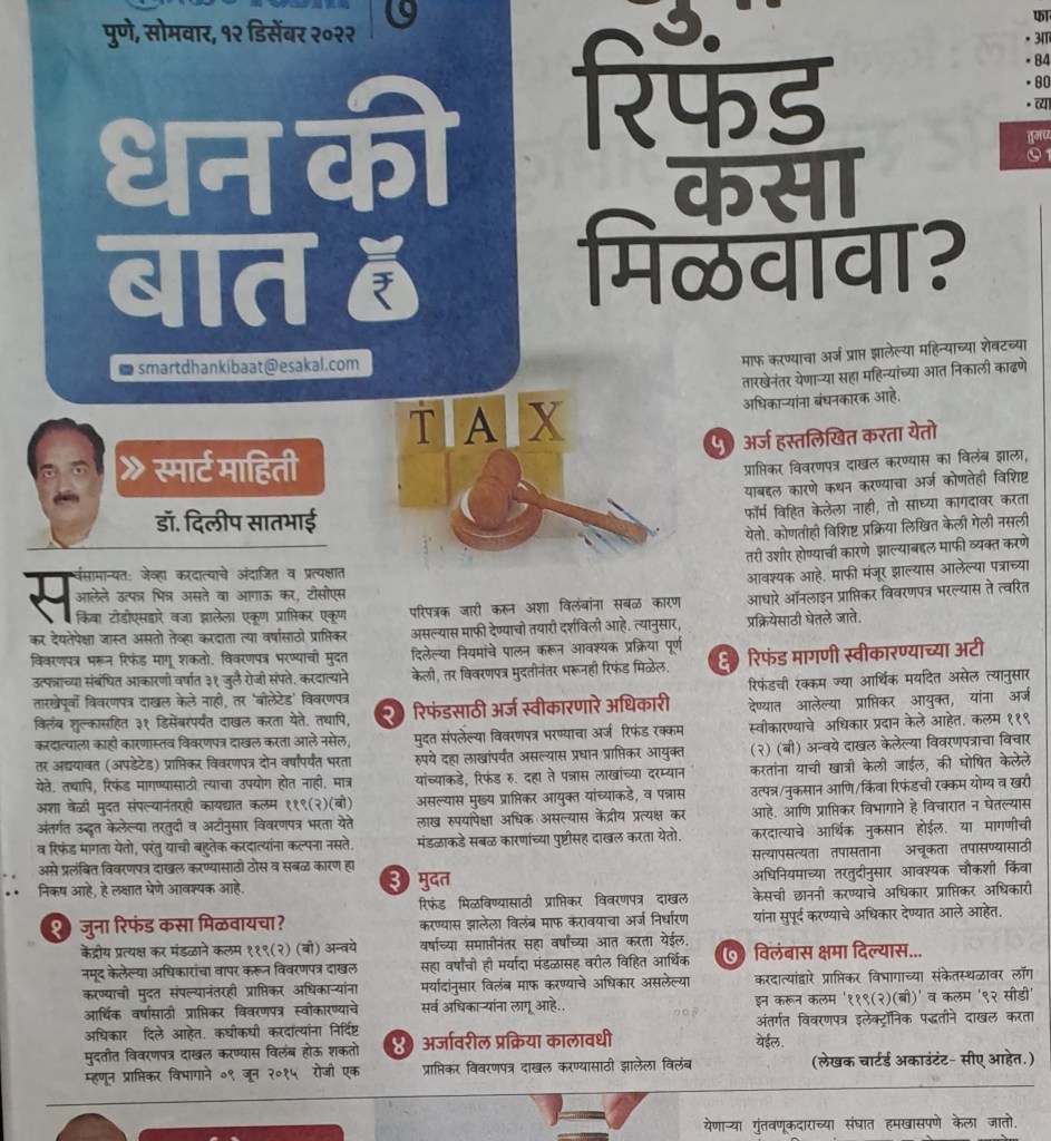 आयकर रिफंड नियम–सौजन्य सकाळ–