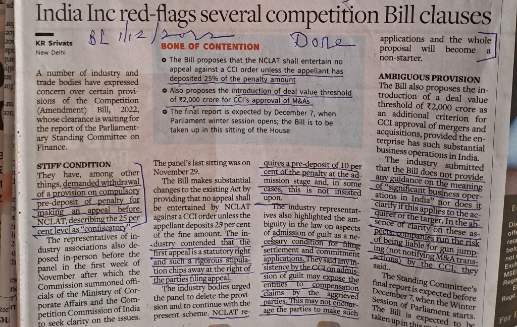 Competition bill –India Inc sceptical about some provisions–Courtesy BusinessLine