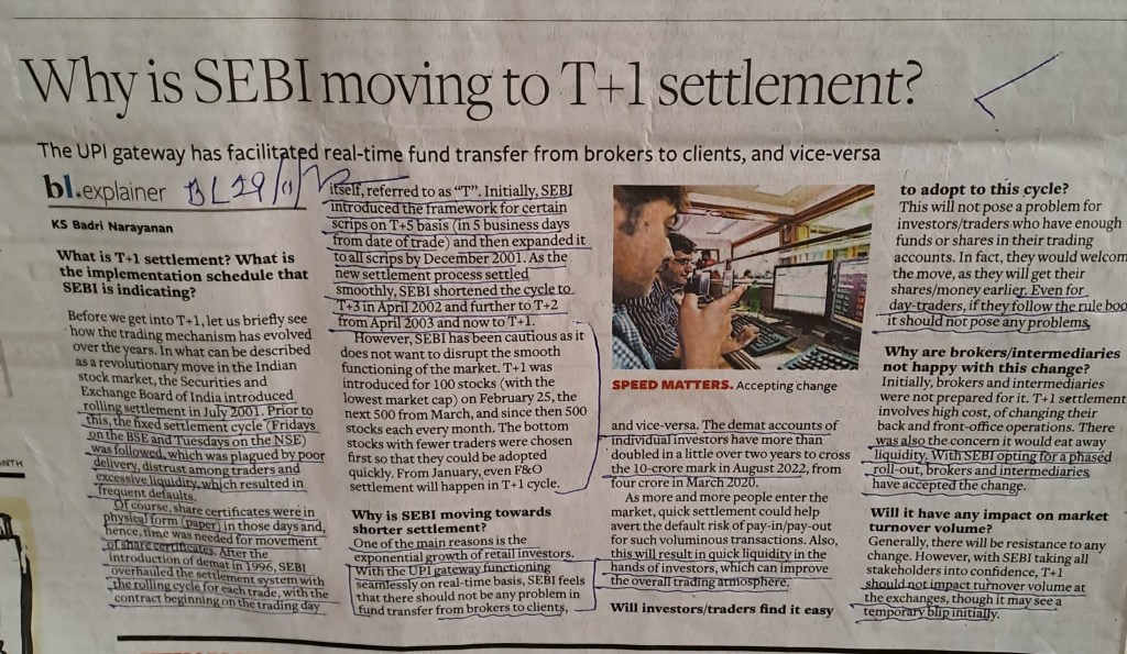 SEBI move T+1 Settlement–Reasons –Courtesy BusinessLine