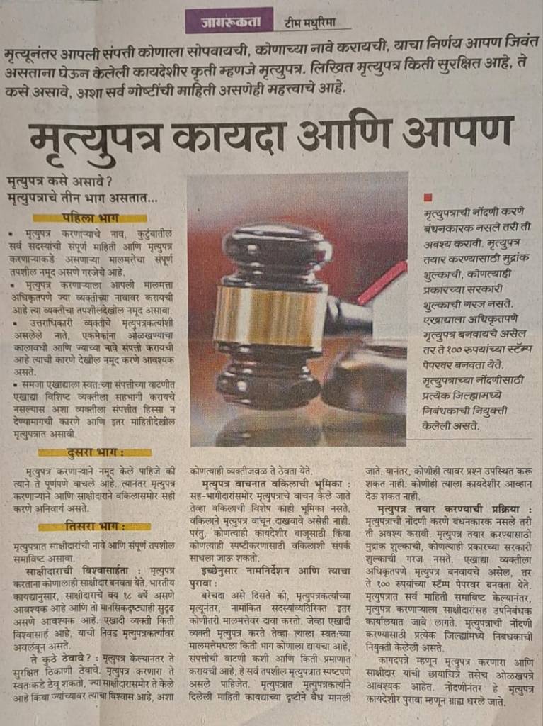 मृत्युपत्र व कायदा–उपयुक्त माहिती!