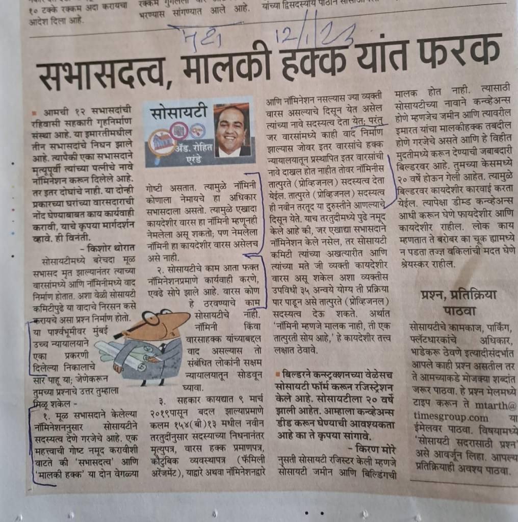 नॉमिनेशन –सोसायटीची जबाबदारी–सौजन्य महाराष्ट्र टाइम्स