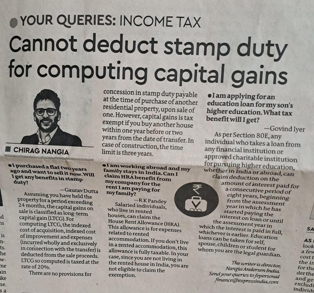 *Income Tax–Capital Gains Tax Courtesy Financial Express