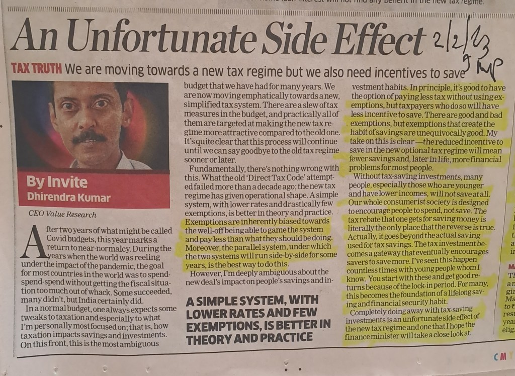 It is true that exemptions r inherently biased towards comparatively well off and probably the government is trying to give income tax concessions and at the same time leave surplus with them so that they spend more –but is it likely? Will they spend or save ? [2] and the savers in the economy do contribute to government’s efforts to create a potentially strong economy. [3] fact remains that household financial savings as a percentage of GDP have fallen from 8.1% in FY 20 to 6.5% in FY 23 –whether it will go down further? And whether it is good for the economy?
