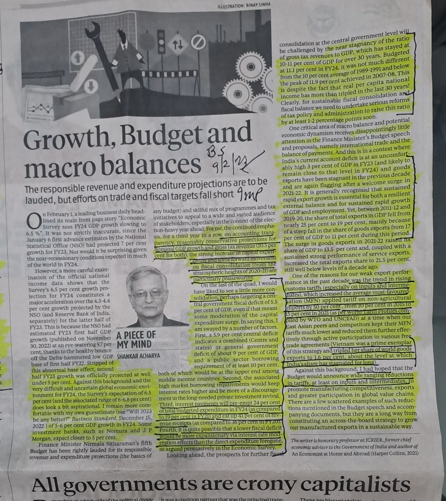 ЁЯЩПЁЯЩПЁЯЩП Budget Analysis –Shankar Acharya–Courtesy Business Standard