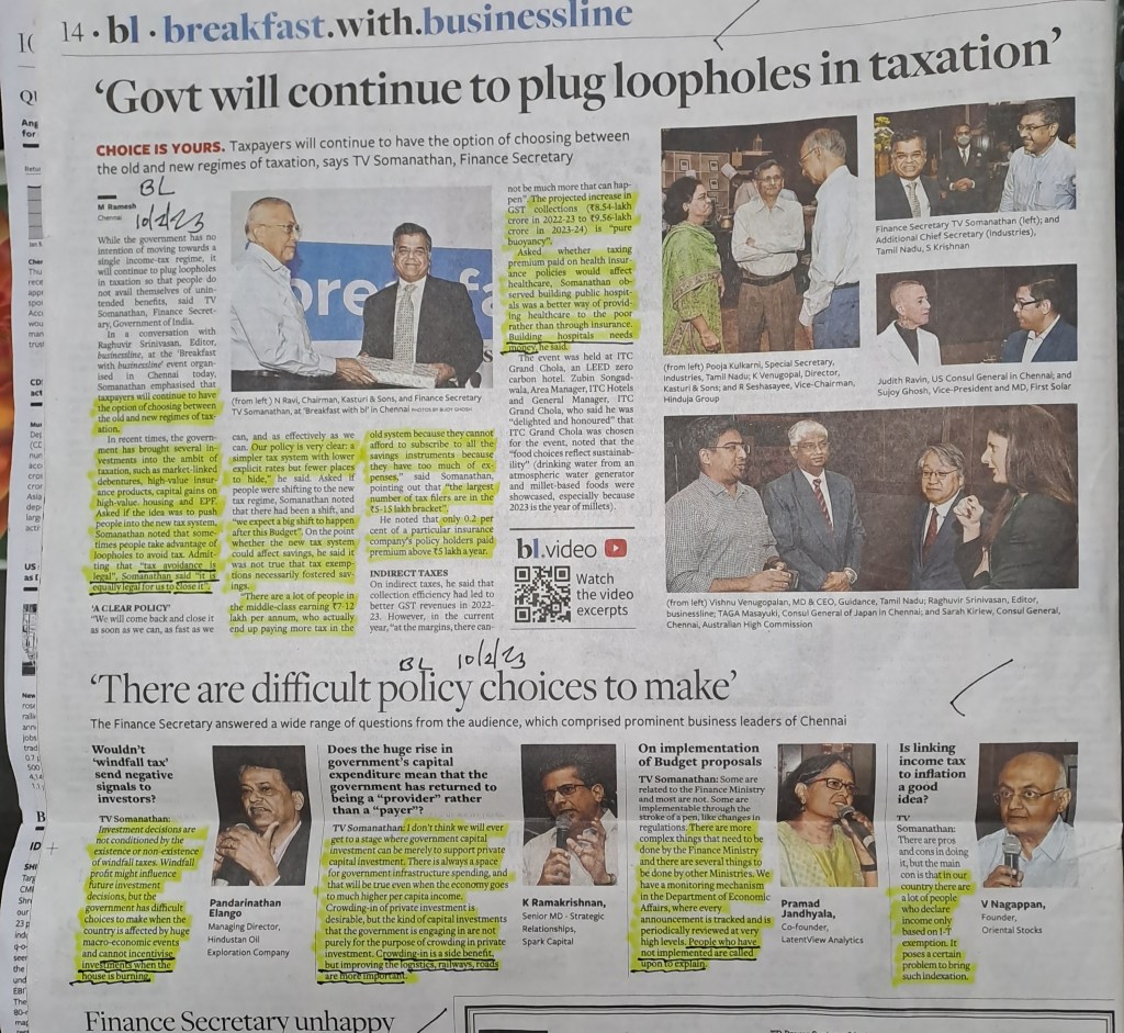 ЁЯЩПЁЯЩПЁЯЩПFinance Secretary interview –Budget -Courtesy BusinessLine 10.2.2023