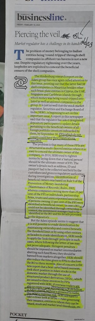 ЁЯЩПЁЯЩПЁЯЩПSEBI has a tough job on hand–Courtesy BusinessLine 1p.2.2023