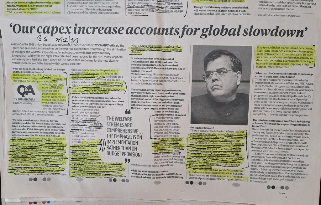 Capital Expenditure also intended to fill in the gap created by global slowdown–Courtesy Business Standard–3.2.23