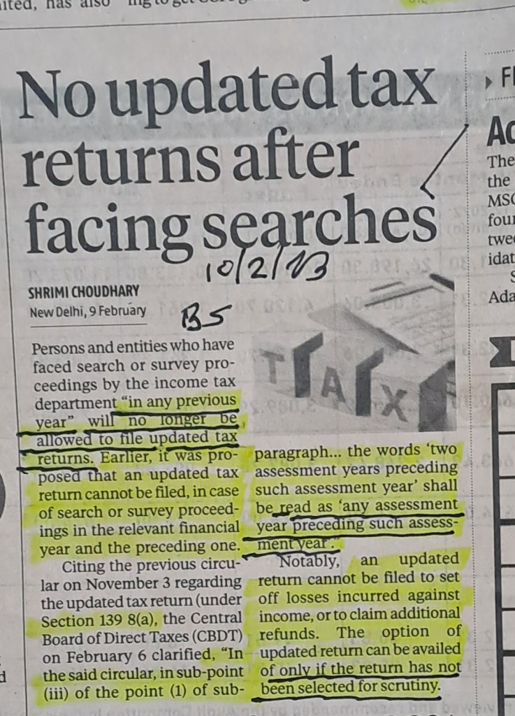 Circumstances which allow updated tax returns–courtesy Business Standard 10.2.23
