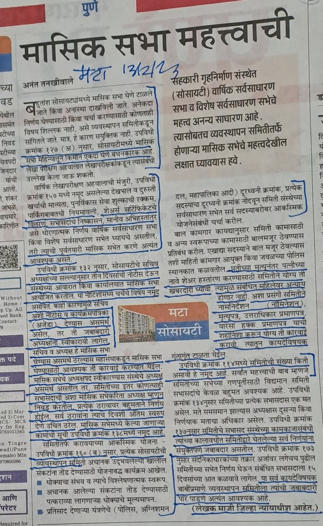 हाऊसिंग सोसायटीस उपयुक्त माहिती! सौजन्य महाराष्ट्र टाइम्स 13.2.23