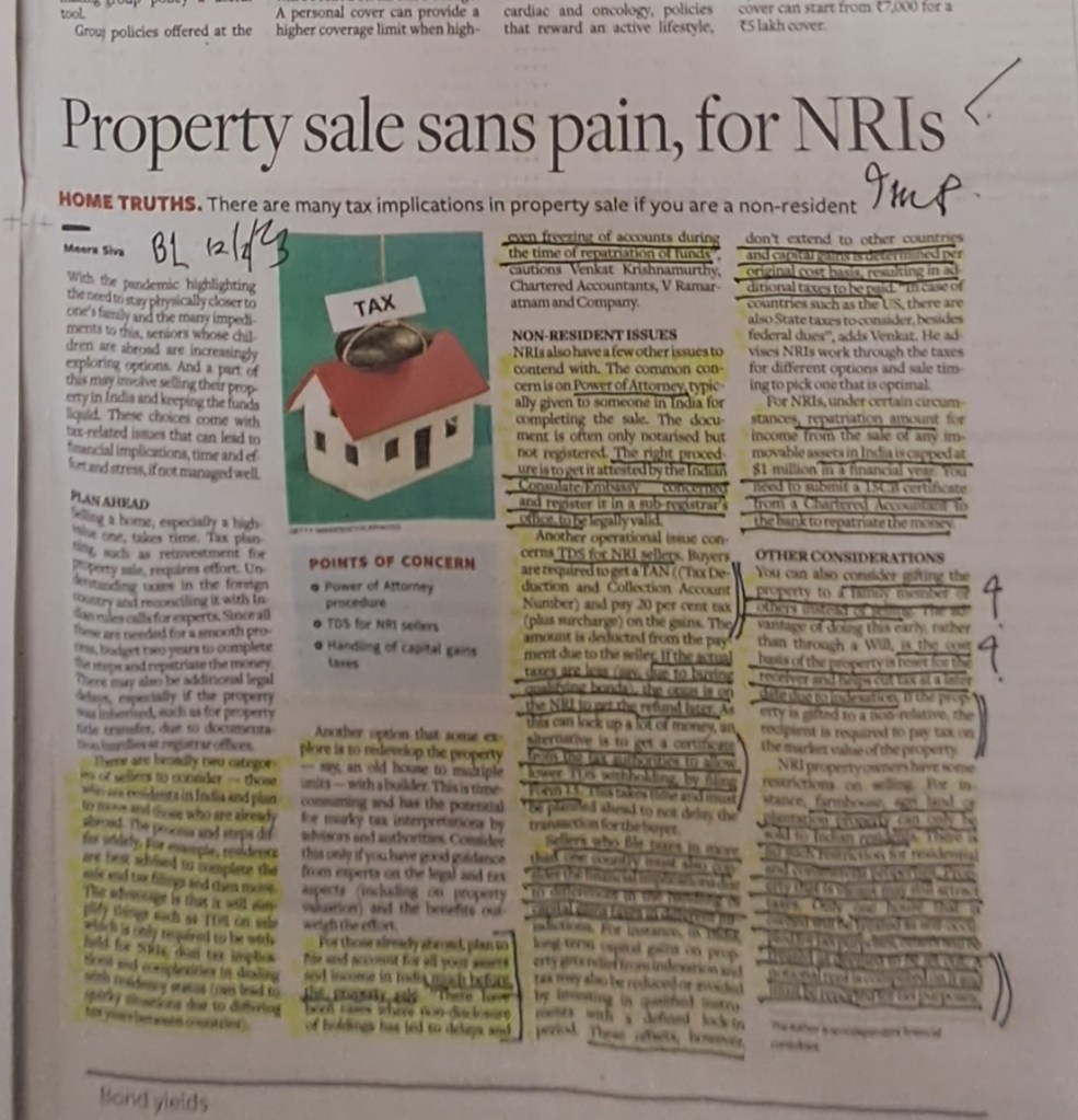 ЁЯЩПЁЯЩПЁЯЩП*Care NRIs need to take while selling property–Courtesy BusinessLine 12.2.23