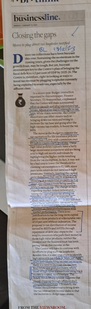 Budget tries to plug loopholes in direct taxes — Courtesy BusinessLine 13.2.23