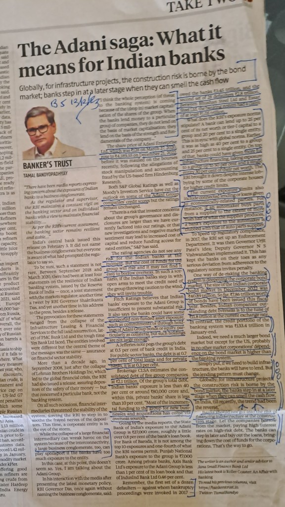 Infrastructure lending –bonds vis a vis borrowing from banks –Courtesy Business Standard 13.2.23
