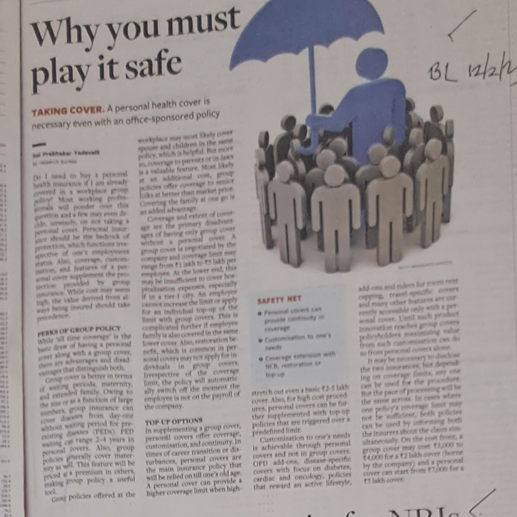 Though employer may have health insurance for u, it is necessary to have alternative–Courtesy BusinessLine 12.2.23