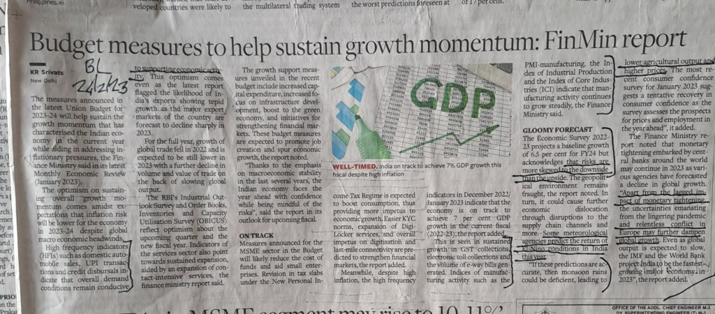 ЁЯЩПBudget to help sustain economic growth–Courtesy BusinessLine 23.2.23