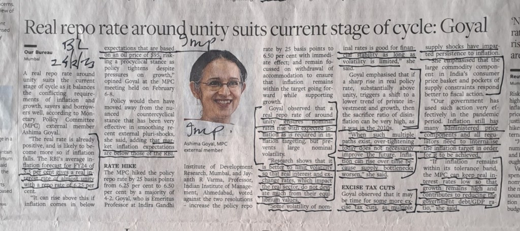 ЁЯЩПЁЯЩПЁЯЩП***MPC member Goyal’s forthright views on repo rate –Courtesy BusinessLine 23.2.23