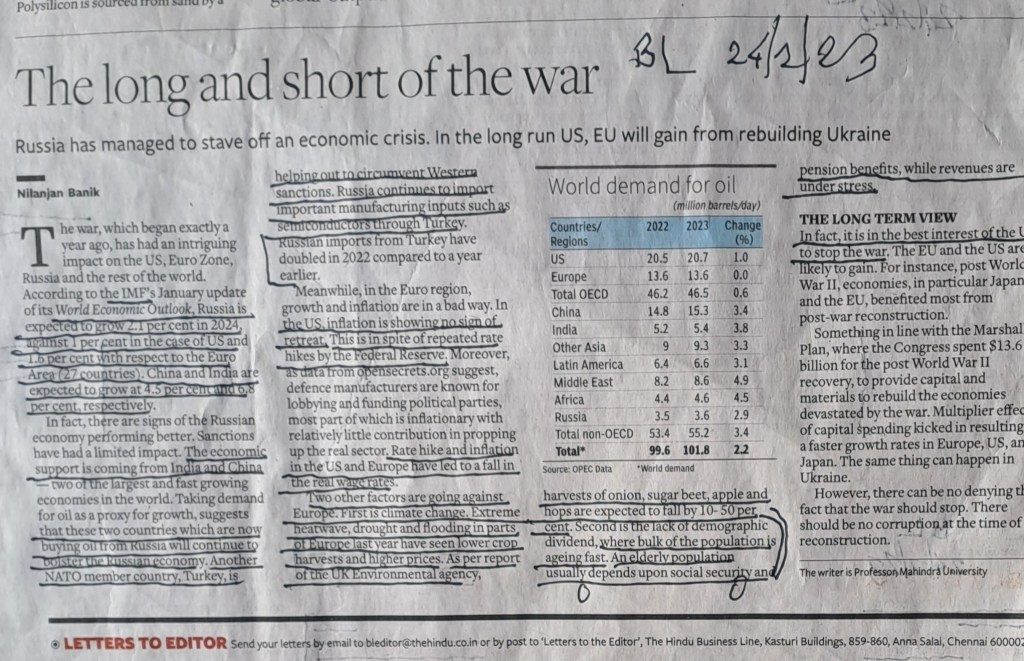 ЁЯЩПЁЯЩПPost war–one of the suggestions is –“it is in the interest of US to halt ” -Courtesy BusinessLine 23.2.23