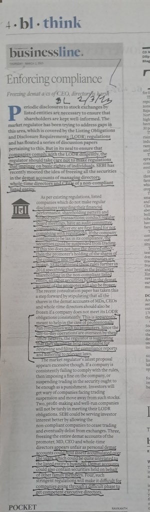 ЁЯЩПSEBI–new prescription to enforce compliance may prove unpalatable–Courtesy BusinessLine 2.3.23