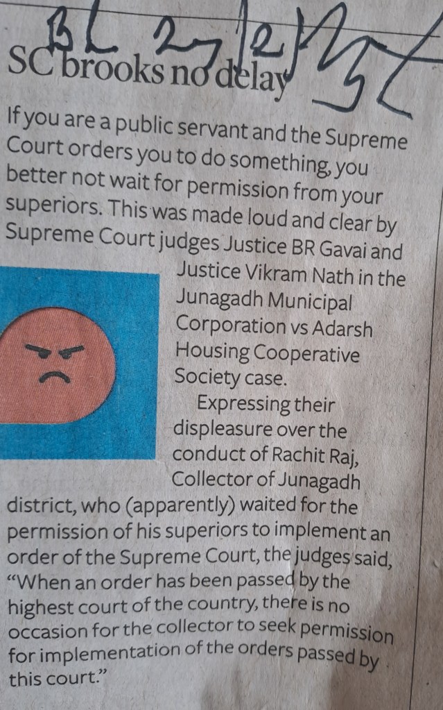 ЁЯЩПSupreme Court orders r to be implemented in right spirit—Government servant/s r not required to seek permission from higher ups if SC has issued some orders–Courtesy BusinessLine 27.2.23