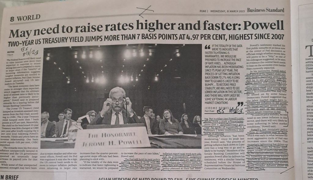 ЁЯЩПFed may increase the rates–Courtesy Business Standard–8.3.23