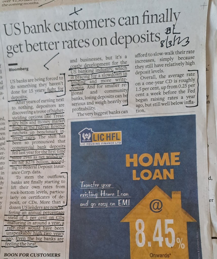 ЁЯСНUS depositors likely to earn handsome interest–after a long time–Courtesy BusinessLine 8.3.23