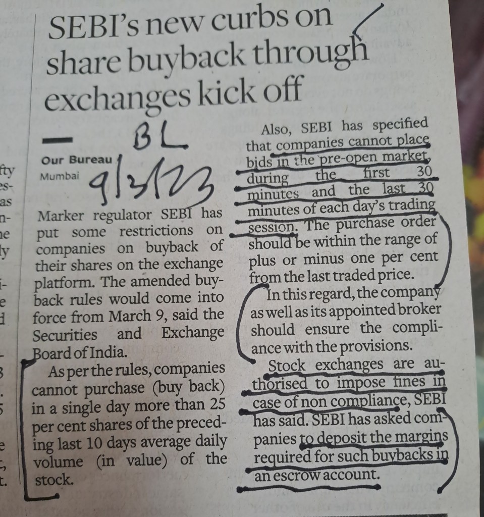 ЁЯСНЁЯСНЁЯСНЁЯСНЁЯСНSEBI new rules on buy back — Courtesy BusinessLine 9.3.23