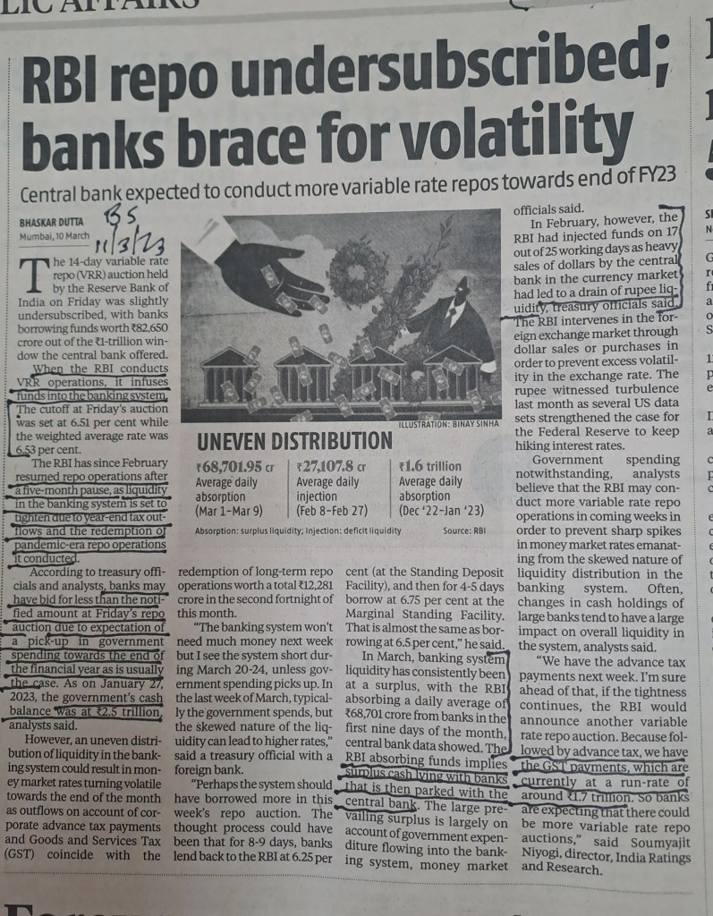ЁЯСНLiquidity constraint in the system? Courtesy Business Standard–11.3.23