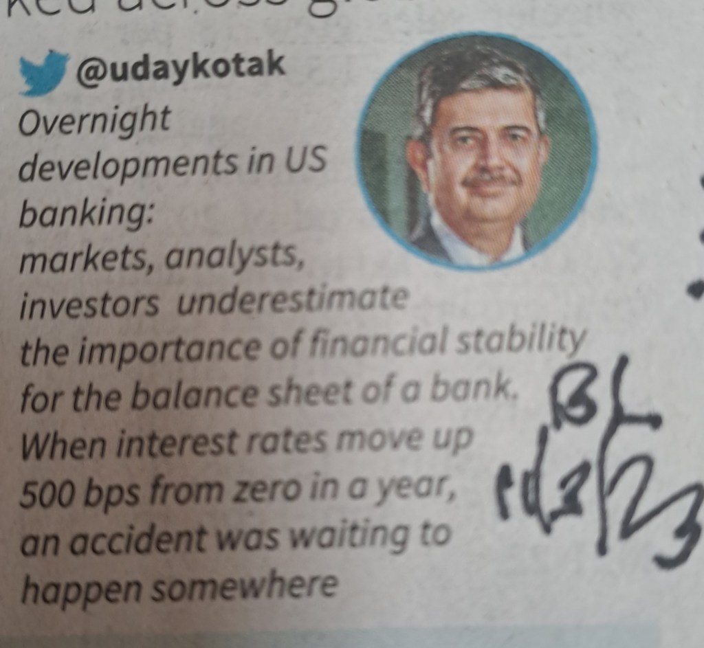 ЁЯСНMr Uday Kotak on SVB issue –Courtesy BusinessLine 11.3.23